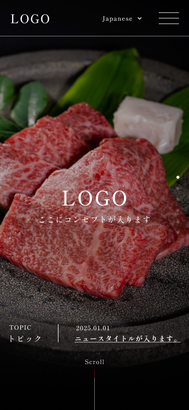 和食・寿司・中華・焼肉・イタリアンなど、さまざまなジャンルの飲食店公式サイト向けのテンプレートが用意されています。お店の雰囲気に合わせたデザインをお選びいただけます。